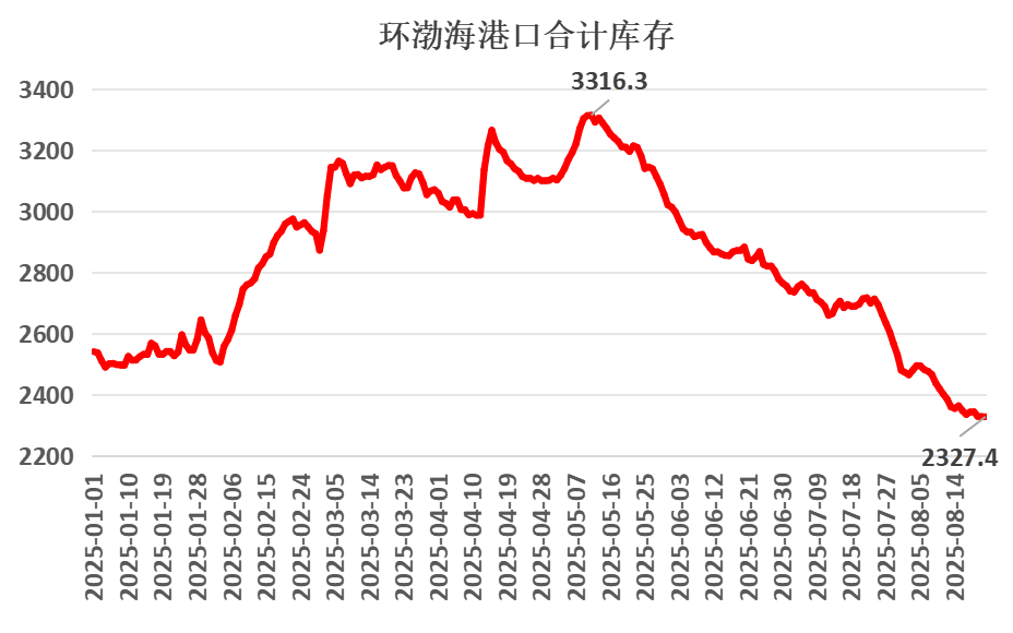 上游產(chǎn)地煤價自上周起便連續(xù)松動,各煤種一周內(nèi)普遍下調(diào)15–20元/噸。港口市場同樣承壓陰跌,自8月25日起,秦皇島港5000K、4500K動力煤報價連續(xù)走弱,日均跌幅達3–4元/噸,市場看空情緒明顯升溫。