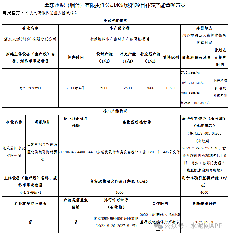 9月2日,山東省工信廳發(fā)布“關(guān)于冀東水泥(煙臺)有限責(zé)任公司水泥熟料生產(chǎn)線補(bǔ)充產(chǎn)能置換方案的公示”。