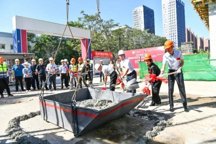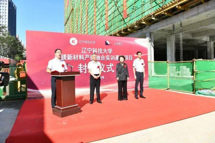 17日上午,遼寧科技大學菱鎂新材料產教融合實訓基地項目主體結構封頂儀式舉行。