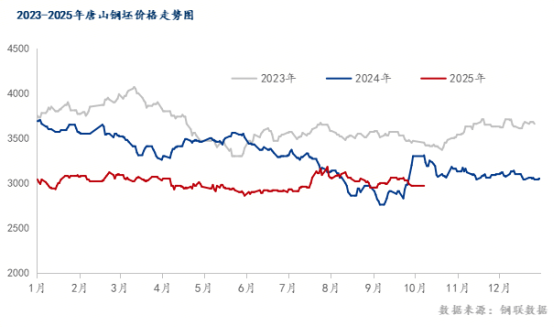 圖二:2023-2025年唐山鋼坯價格走勢圖