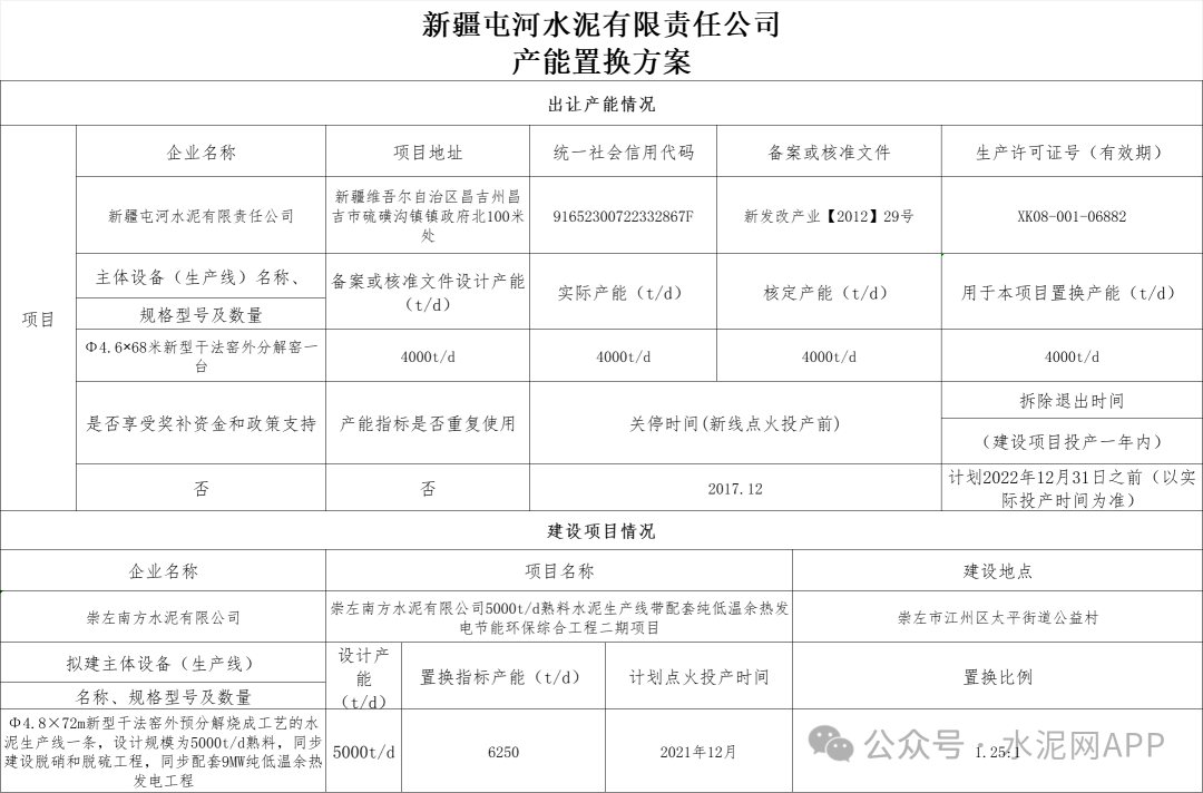 10月14日,新疆工信廳發(fā)布公告稱,根據(jù)《工業(yè)和信息化部關(guān)于印發(fā)〈水泥玻璃行業(yè)產(chǎn)能置換實(shí)施辦法〉的通知》(工信部原〔2024〕206號(hào))要求,經(jīng)現(xiàn)場(chǎng)核查確認(rèn),新疆屯河水泥有限責(zé)任公司2020年9月置換至廣西崇左南方水泥有限公司的Φ4.6×68米(日產(chǎn)4000噸)水泥熟料生產(chǎn)線已關(guān)停拆除。