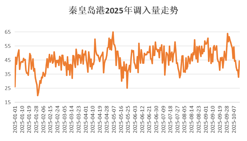 集中檢修首日,大秦線發(fā)運量為80.02萬噸,較檢修前正常水平下降約25%,日均運力減少約20-25萬噸,導(dǎo)致環(huán)渤海港口煤炭集港量相應(yīng)縮減。歷史數(shù)據(jù)顯示,檢修期間秦皇島港日均調(diào)入量可能降至35萬噸以下,港口庫存將進入去化周期。