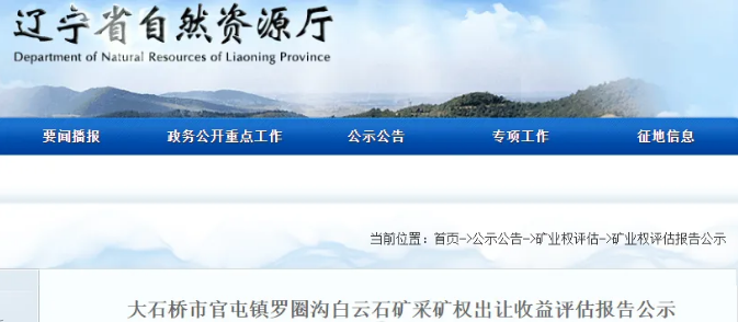 大石橋市官屯鎮(zhèn)羅圈溝白云石礦采礦權(quán)出讓收益評(píng)估報(bào)告通過(guò)遼寧省自然資源廳門(mén)戶(hù)網(wǎng)站向社會(huì)公示,公示10個(gè)工作日。如有異議,請(qǐng)于公示之日起10個(gè)工作日內(nèi)以電話方式先向省自然資源廳礦產(chǎn)資源保護(hù)監(jiān)督處提出簡(jiǎn)要意見(jiàn),隨后及時(shí)將書(shū)面意見(jiàn)反饋到省自然資源廳礦產(chǎn)資源保護(hù)監(jiān)督處。