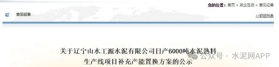 三、遼寧山水工源水泥有限公司退出一條2500t/d產(chǎn)能(用于本項(xiàng)目1000t/d)至本公司5000t/d熟料線,用于補(bǔ)充產(chǎn)能至6000t/d。