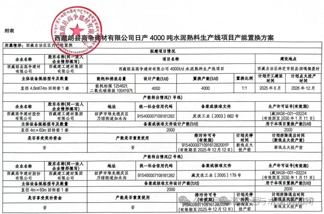 近日,西藏天路發(fā)布三季報(bào),其中提到,2025年1月,公司控股子公司西藏高爭建材股份有限公司(持股51%)與西藏藏建水泥有限公司(持股 25%)、林芝市城市投資有限責(zé)任公司(持股13%)、朗縣城市投資有限責(zé)任公司(持股11%)共同成立了“西藏朗縣高爭建材有限公司”,注冊資本3500萬元,對外投資構(gòu)成的關(guān)聯(lián)交易事項(xiàng)已經(jīng)公司總經(jīng)理辦公會審議通過。目前,西藏朗縣高爭建材有限公司通過自治區(qū)區(qū)內(nèi)產(chǎn)能置換方式在林芝市朗縣建設(shè)一條4000t/d水泥熟料生產(chǎn)線項(xiàng)目,已完成用地預(yù)審、產(chǎn)能置換、項(xiàng)目備案、農(nóng)用地轉(zhuǎn)建設(shè)用地以及礦山“兩報(bào)告一方案”評審等工作。西藏朗縣高爭建材有限公司正在辦理環(huán)評、土地使用權(quán)出讓等審批程序。據(jù)悉,4月23日,西藏經(jīng)信廳發(fā)布“關(guān)于西藏朗縣高爭建材有限公司4000t/d水泥熟料生產(chǎn)線項(xiàng)目產(chǎn)能置換方案的公示”。