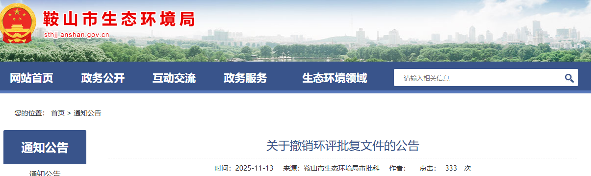 現(xiàn)建設(shè)單位申請(qǐng)撤銷該環(huán)評(píng)批復(fù),依據(jù)《中華人民共和國(guó)行政許可法》第六十九條規(guī)定,經(jīng)研究,我局依法決定撤銷《海城市軒鎂耐火材料有限公司改擴(kuò)建項(xiàng)目環(huán)境影響報(bào)告表的批復(fù)》(鞍行審批復(fù)環(huán)〔2023〕14號(hào)),現(xiàn)予以公告。