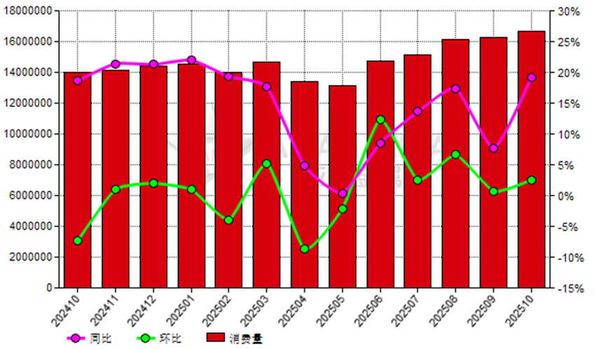2025年1-10月,中國氧化鋁生產(chǎn)商共計消費進(jìn)口鋁土礦148,640,000.00公噸,去年同期為131,710,000.00公噸,同比增長12.85%。