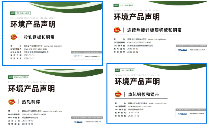 近日,敬業(yè)鋼鐵4款鋼鐵產(chǎn)品的環(huán)境產(chǎn)品聲明(EPD)順利通過中國船級社認證,并成功發(fā)布于中國鋼鐵工業(yè)協(xié)會EPD平臺。這4份EPD報告涉及產(chǎn)品分別為熱軋鋼板和鋼帶、熱軋鋼棒、冷軋鋼板和鋼帶、連續(xù)熱鍍鋅鍍層鋼板和鋼帶。