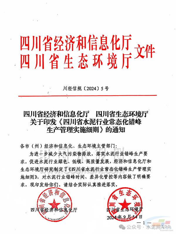 9月14日,四川省經(jīng)濟(jì)和信息化廳 四川省生態(tài)環(huán)境廳印發(fā)《四川省水泥行業(yè)常態(tài)化錯(cuò)峰生產(chǎn)管理實(shí)施細(xì)則》(簡(jiǎn)稱:《細(xì)則》)。