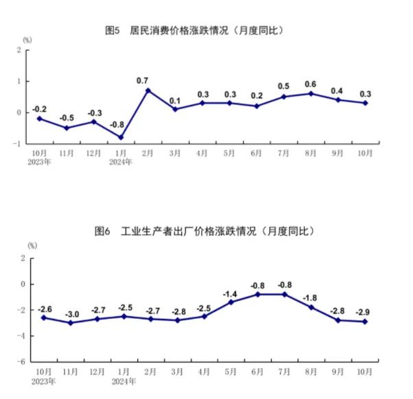 10月份,全國工業(yè)生產(chǎn)者出廠價格同比下降2.9%,環(huán)比下降0.1%;全國工業(yè)生產(chǎn)者購進價格同比下降2.7%,環(huán)比下降0.3%。1-10月份,全國工業(yè)生產(chǎn)者出廠價格和購進價格均比上年同期下降2.1%。