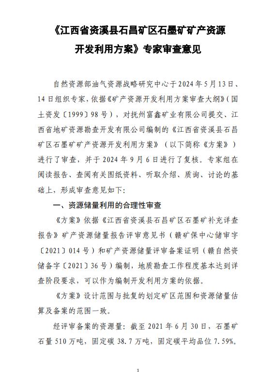 江西省資溪縣石昌礦區(qū)石墨礦礦產(chǎn)資源開(kāi)發(fā)利用方案審查結(jié)果的公示
