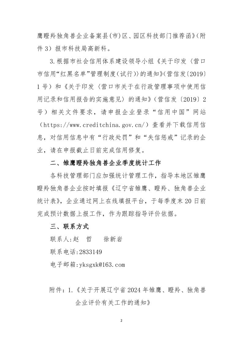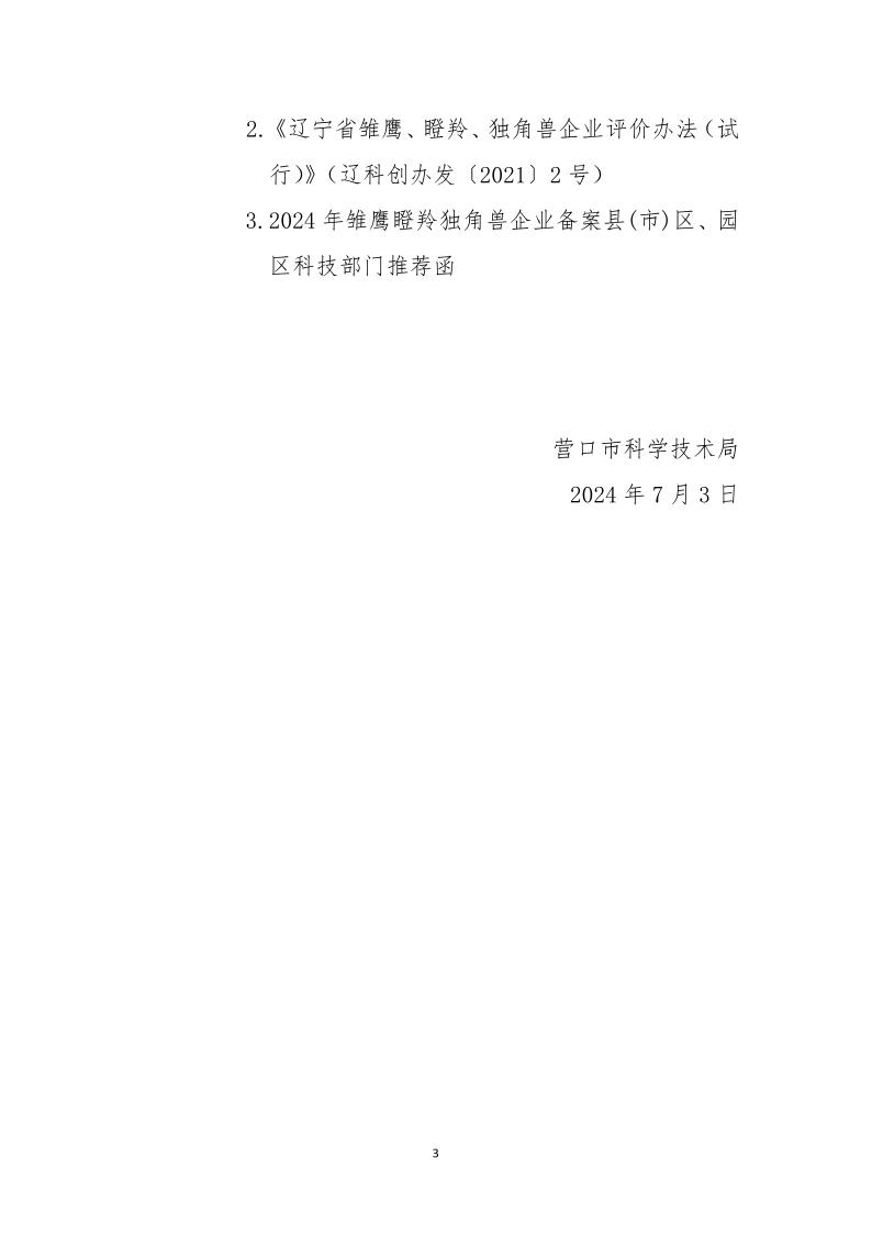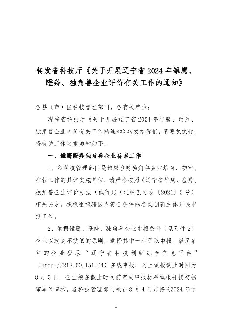 《關(guān)于開(kāi)展遼寧省2024年雛鷹、瞪羚、獨(dú)角獸企業(yè)評(píng)價(jià)有關(guān)工作的通知》
